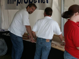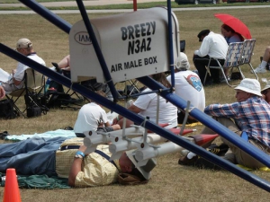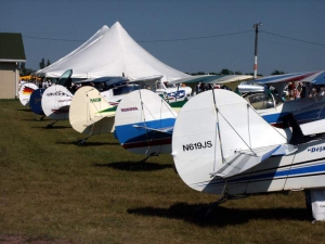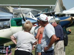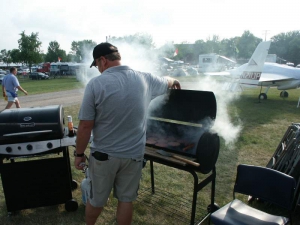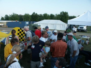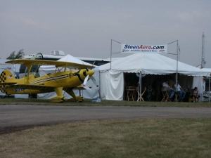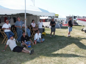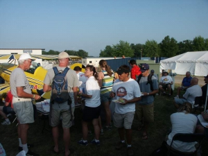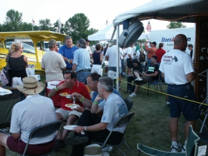Friday evening, Steen hosted the annual Biplane Cookout at our display. It’s open to all biplane lovers and we had a great turnout this year… we figure roughly 150 people attended. It’s always neat to talk to folks who are building or flying any number of planes… many folks there aren’t building one of our designs, and the emphasis is simply on having a good time regardless of the kind of plane you fly so we think everyone felt right at home. It’s also always great to be able to put faces with the names they may have known from online, the telephone, or elsewhere… and to catch up with old friends. We served burgers, dogs, chips, and various beverages, and everyone had a great time enjoying a beautiful evening. We can’t wait to do it again!