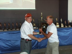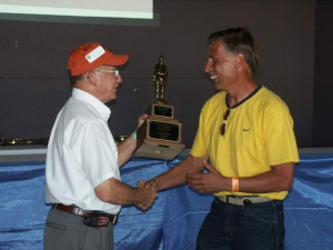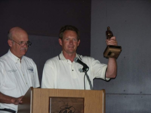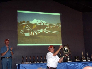 - Michael Marrin accepts his workmanship award. Mike’s plane was on display in our tent at Sun ‘N Fun back in April.