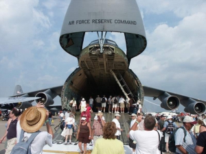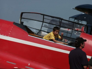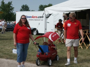 - One great thing about AirVenture is that it’s so family-friendly. Here, Paul and Sherry take Evan and Ethan out to see some of the show.