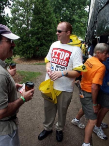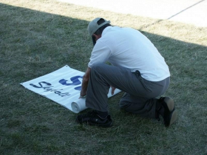 - Dave begins rolling up some of our banners near the end of the day.