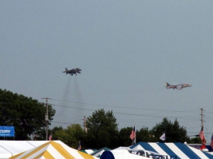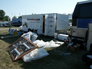 Sunday was the last day of the show, and crowds were fairly light… by early afternoon, most of the visitors were other vendors who hadn’t yet had a chance to visit. Sunday afternoon, we started taking down the display and packing the trailer, and Paul was able to get on the road with the bus and trailer by 7 pm. All in all, it was a good year and we did lots of business. The weather was mostly good except for a few rainy spots, and AirVenture reports excellent attendance numbers. It seems that aviation is thriving, and if we can successfully beat back the ogre of user fees, it will continue to thrive. We enjoyed seeing everyone and look forward to doing it all again next year!