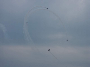 - One of our favorites, the Aeroshell Team, puts on their usual great performance for the crowd. This is the view from our display area.