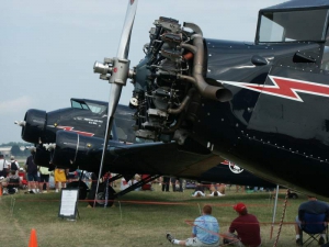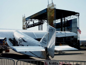 - Two classics… Greg Herrick’s awesome Ford 4-AT-A Trimotor provides a nostalgic atmosphere next to the stage for the evening Beach Boys concert.