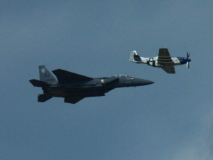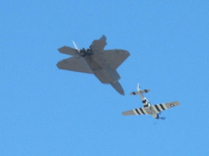 - The Heritage Flight featured the F-22 and P-51.