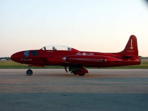 - The Red Knight T-33 was parked at the Orion FBO on the north side of the field. It looked beautiful in the sunset.