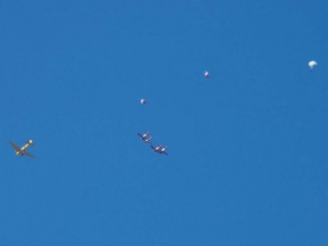 - Duggy drops a stick of parachuters as the Aeroshell team prepares to circle them.