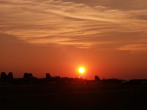 - The perfect end to another Oshkosh… a beautiful sunset over the military aircraft ramp .