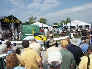 Opening day was very busy, and the crowds seemed quite large. Our display was as busy as we’ve ever seen it. Quite a few acro planes came in, with many that were either new to AirVenture or just plain new. The weather was warm and sunny, with temperatures in the mid 80’s. By the end of the day, everyone was tired, but there was a positive feeling that this year’s event was going to be a really good one.