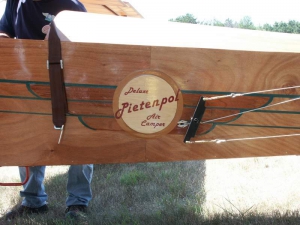 - Dick Navratil’s Piet is not *quite* finished yet, but should fly by the fall. The logo is made of thin plywood.