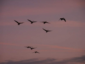 - As the sun set, the already relaxed atmosphere got even more laid back as folks ate dinner and the flying gradually gave way to even more socializing. These geese seemed to be casually checking out the festivities… it sure sounded like honks of approval to me.