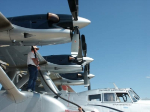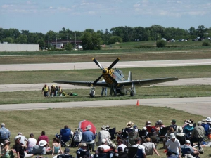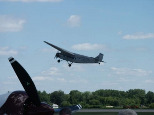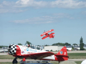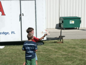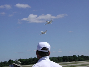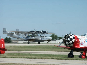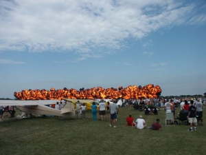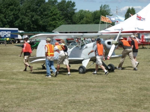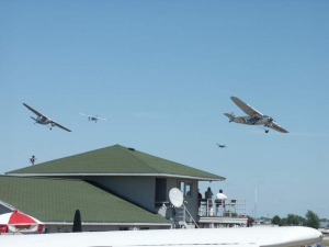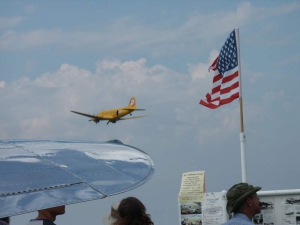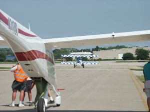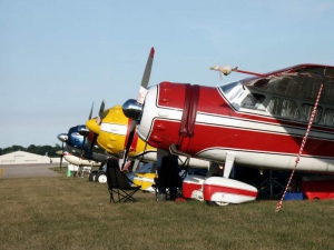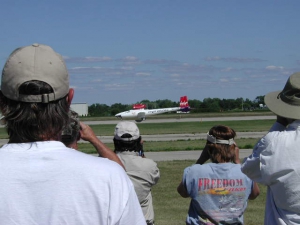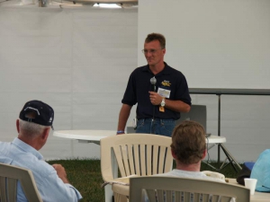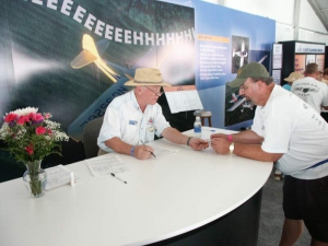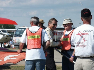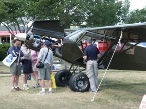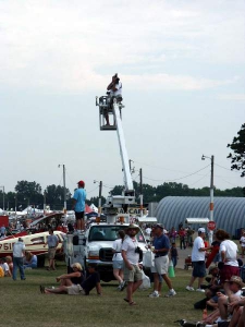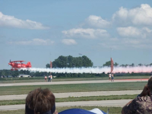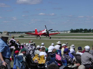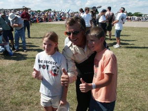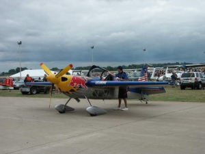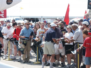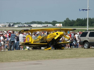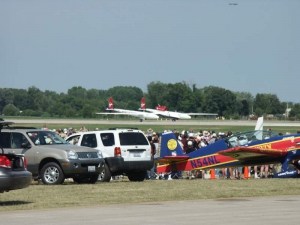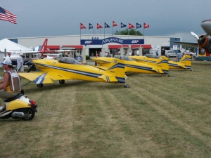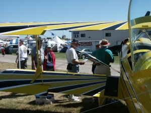 Tuesday saw the trailing edge of Monday’s cold front clear out, with temperatures in the low 70’s and a good breeze… after the 114 degree day on Sunday, it was a very welcome change! The booth continued to be quite busy. Several of us headed over to the EAA Museum to hear our friend Cliff Robertson speak (Cliff owns and flies several planes)… unfortunately for us, his talks have become so popular that they have had to start issuing tickets to limit the number of folks trying to get in. By the time we found out about that, it was too late to get a ticket! He did however have a meet & greet session afterwards so we were able to say hello after all. We saw a bit of the Museum, as a first-time visitor, I can say that it’s truly an amazing place for anyone with even the slightest bit of interest in aviation. Another thing that impressed us was seeing KidVenture… there are many aviation-related activities for the younger ones that helps spread the adult’s excitement about aviation to them. There were even control-line model airplanes and pilots available to help the kids get a taste of “real” model flying. AirVenture is a true class act all the way through. One amazing thing you’ll notice about the character of the event is that no matter where you look, you’ll be very hard-pressed to find a speck of trash on the grounds… not just because the volunteers are active in keeping things clean, but the visitors just don’t drop trash on the grounds. This Mecca of aviation is truly held in high esteem by those who attend. The town of Oshkosh embraces the visitors and AirVenture with open arms, and we’ve been treated to a very positive experience all the way through.