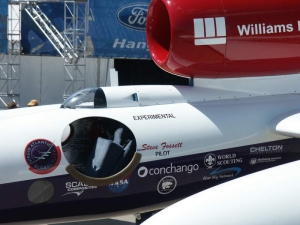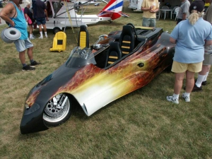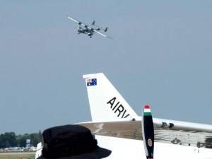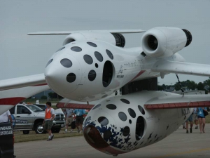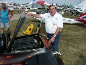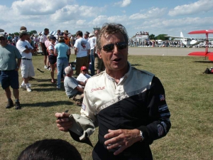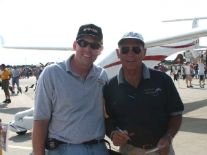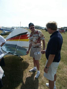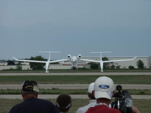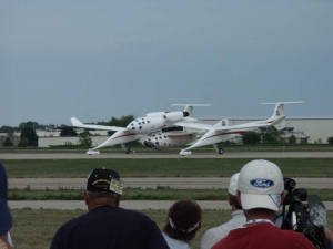 Burt Rutan and Mike Melville seemed omnipresent at AirVenture, frequently appearing at forums, by their aircraft, or in exhibition tents. One of our crew, Mike Jones, even managed to get Burt to sign a “Burt Rutan for President” bumper sticker, and Mike Whaley got a chance to get a quick photo with Mike Melville. Brian Binnie and SpaceShipOne’s financial sponsor Paul Allen were also around the show, though it seems that Burt and Mike were seen more often. Everyone had a real sense of appreciation that Burt and his crew made a point to bring these aircraft to the place and organization that really launched the homebuilt aircraft movement and which had such a huge role to play in his legendary career. While Mike Melville and Brian Binnie got a lot of the headlines in the general press, it was clear that many EAAer’s see Burt Rutan as their personal hero not just for the famous recent projects, but for his whole body of work going back to the Vari-Viggen and even before then. There really was a feeling that Burt was “back home” at AirVenture.