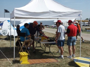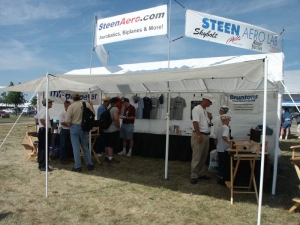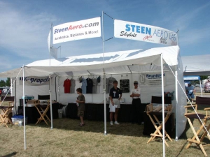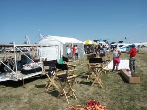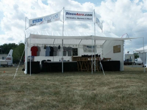 Sunday was a very pleasant day for setup, which went very smoothly. We are set up much like last year, in the same location (we’re between the main entrance gate and Paul’s park, or the south end of the same row that the large Cirrus display is at.) We have branched out with several new product lines this year, including Piloti Flying Shoes and ColorEyes HDL-3C, and we think they’re going to be hot sellers. We’ll see!
