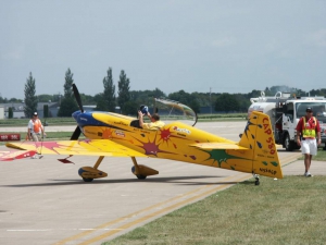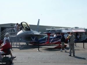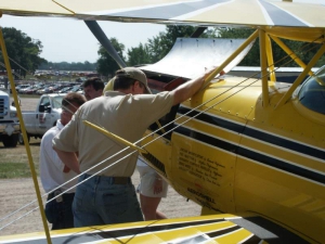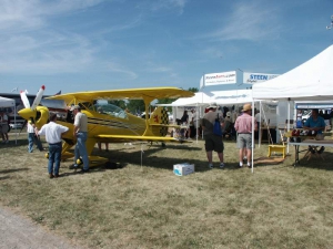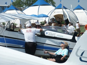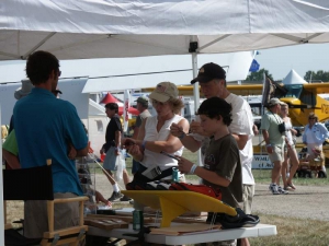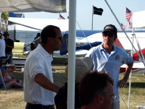 We continued to stay busy on Saturday, with the Piloti shoes and ColorEyes sunglasses attracting a great deal of interest. The weather remained HOT… it is certainly cooler back home in Florida, thanks to the seabreeze… and gee, we actually thought that it might actually be cooler up north! There was a lot going on though, so our minds weren’t only on the heat. Saturday is the second day for the big Warbird airshow, and many interesting forums and demonstrations were scheduled around the AirVenture grounds.