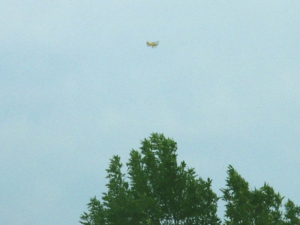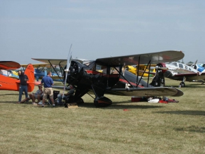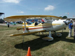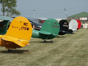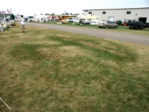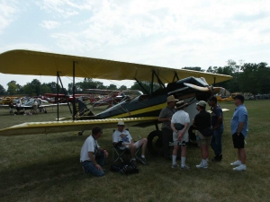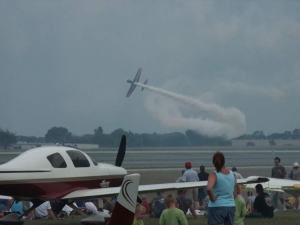 Sunday started with a bang — literally — as we awoke at 6:45am to the sound of intense thunder. Looking at the radar, most of Wisconsin was covered in severe thunderstorms, with many watches and warnings. Fortunately, by the time the show started, the rain had pretty much cleared out, and the cloudiness brought some much-appreciated relief from the intense heat of the past week. Barrett took the Skybolt out to head back home during the morning. He got stuck when the airport was suddenly shut down, however. Everyone was shocked to learn that the closure was due to an accident in which a Grumman Avenger ran over an RV-6 taxiing in front of it, resulting in the death of the passenger in the RV. News like this really hits home, whether or not you know anyone involved… they very well might be someone you were hangar flying with yesterday. It sounds like a simple case of the pilot of a large airplane with very poor forward visibility being unable to see a small airplane in front of him, though the NTSB will certainly figure it all out in painstaking detail. In any case, everyone’s thoughts and prayers were with all those involved in this tragic incident… the first fatal accident at Oshkosh in 15 years (except for the plane that went down during landing at the beginning of the week.)