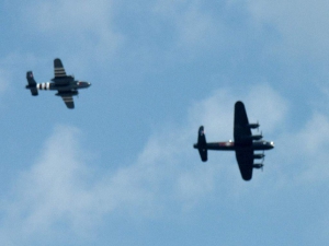 The big story today was the arrival of the Avro Lancaster… there were over 7,000 built, yet only two fly today and only one of those is in North America. Despite being about an hour behind schedule, everyone waited around patiently to see this legendary and very rare bomber. It arrived with a B-25 off it’s wing, both in attractive RCAF colors. They only made one pass before landing, but we did get to see the massive bomb bay doors open up before engine shutdown. This plane is so expensive to operate, there is a real threat that it soon may not be able to fly anymore unless a very wealthy sponsor (or the Canadian government) decides to cover the costs. That would be a shame, as it’s a very unique and historic aircraft.