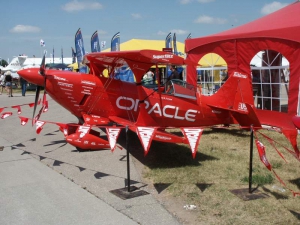 - Mike Goulian’s plane was on display at the Castrol tent.