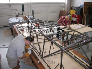- Mark Eckenrod tacking-up the fuselage while Curtis works the design. It is an honor to work so closely in the prototype development, and to learn a from his lifetime of experience.