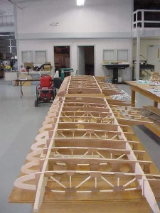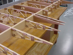 - The two lower wings are assembled (sans epoxy sealer) while we look at the fit of everything. Many minor tweaks in the details were made during the initial construction.